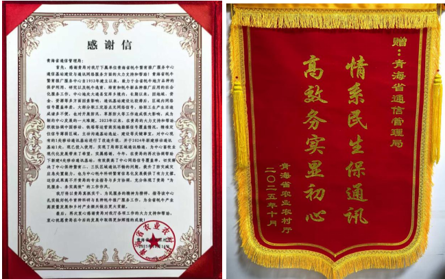 10月28日,青海省牦牛繁育推广服务中心党委书记、主任景建武携班子成员,将青海省农业农村厅的感谢信及锦旗送至青海省通信管理局,对青海省通信管理局在赋能有机农畜产品输出地建设、助力牦牛等特色农畜产业数字化发展中作出的贡献表示感谢。