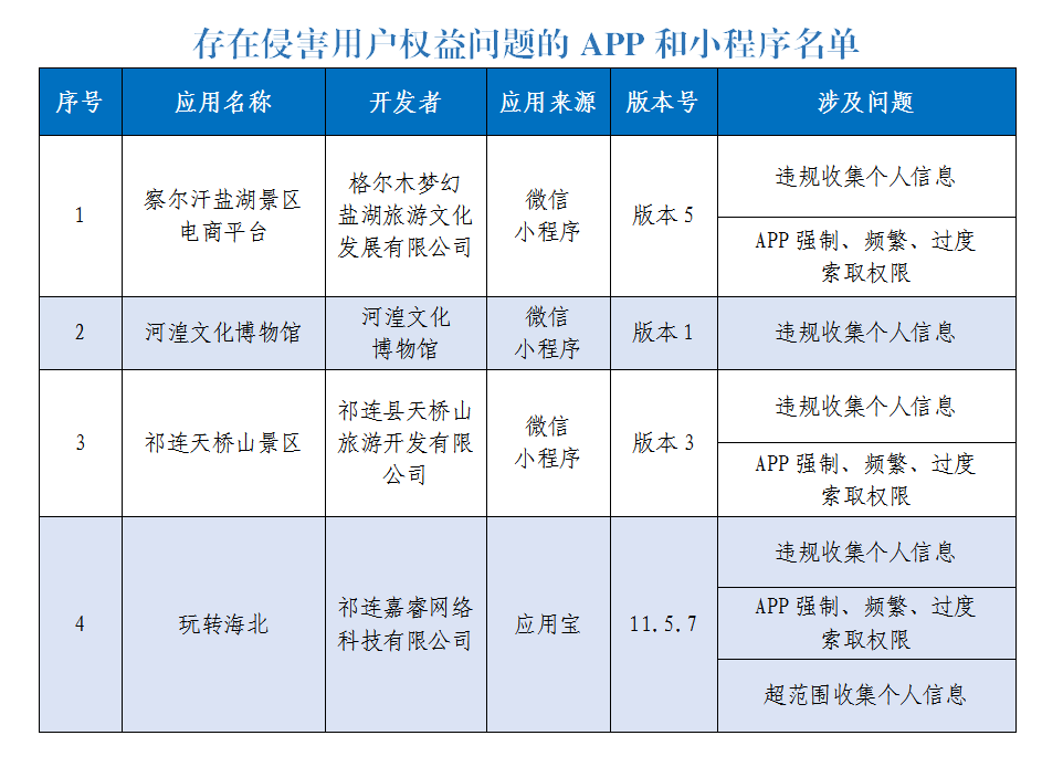 青海省通信管理局关于旅游景区类APP和小程序侵害用户权益的通报