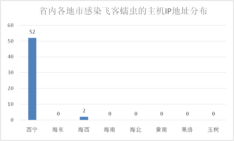 1月,青海省感染“飞客”蠕虫病毒的主机IP数量为54个。